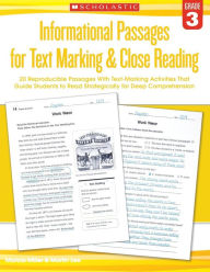 Informational Passages for Text Marking & Close Reading: Grade 3: 20 Reproducible Passages With Text-Marking Activities That Guide Students to Read Strategically for Deep Comprehension