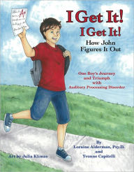 I Get It! I Get It! How John Figures It Out, is about a boy's triumph over Auditory Processing Disorder from a child's point of view. Colorful illustrations bring to life John's journey from confusion to understanding. John encounters difficult situations at home and in school. He loses faith in himself and feels overwhelmed, frustrated and dumb. The adults in his life think he is inattentive and not trying hard enough. Children with Auditory Processing Disorder (APD) find the world a confusing, challenging place. Although they do not have a hearing loss, they often mishear and misinterpret directions they receive verbally. With the help of his parents, teachers and speech therapists John learns that he is not dumb but a smart boy who has an Auditory Processing Disorder. At the end of the story John figures it out, regains his self esteem and is very happy.