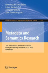 Metadata and Semantics Research: 10th International Conference, MTSR 2016, Göttingen, Germany, November 22-25, 2016, Proceedings