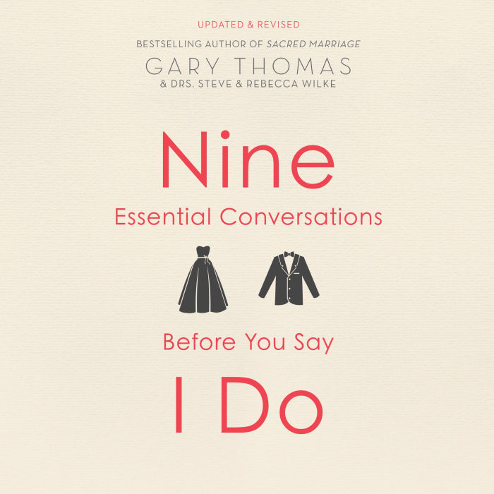 In his popular book, 9 Essential Conversations before You Say I Do, author and pastor Gary Thomas, marriage and family therapist Dr. Steve Wilke and Rebecca Wilke, EdD help couples explore: