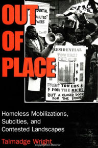 Out of Place: Homeless Mobilizations, Subcities, and Contested Landscapes details the development of two organized homeless resistances in two different cities. From the redevelopment protesters and squatting activities of the Student-Homeless Alliance in San Jose to the squatter camps of Tranquility City in Chicago, the differences and similarities between both groups are highlighted within the context of city redevelopment policies. Wright argues for considering homelessness not merely as an issue for social welfare, but first and foremost as a land use issue directly connected to issues of gentrification, displacement, and the cultural imaginings of what the city should look like by those who have the power to shape its development.