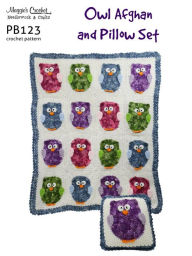 PB123-R Owl Afghan and Pillow Set Crochet Pattern
