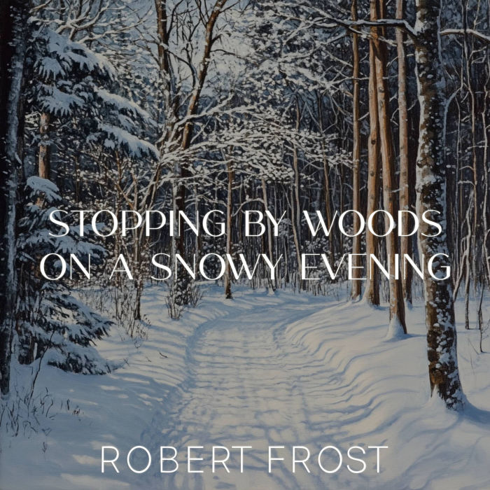 Journey into the serene winter landscape of Robert Frost's beloved poem in this captivating audiobook rendition of 'Stopping by Woods on a Snowy Evening.' Experience the quiet contemplation of a traveler pausing to admire snow-covered woods on the darkest evening of the year. Our narration brings to life the poem's hypnotic rhythm and evocative imagery, allowing listeners to feel the gentle falling snow and hear the harness bells of the horse. Perfect for poetry lovers, students of American literature, or anyone seeking a moment of peaceful reflection amidst life's promises and obligations. Immerse yourself in Frost's timeless meditation on nature, solitude, and the journey of life with this enchanting audio experience.