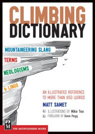 Each word's definition includes its part of speech, origin (if known), its meaning, and a humorous but factually sound example sentence to demonstrate usage. Throughout the dictionary, Mike Tea's illustrations -- both technical and humorous -- help explain harder-to-define terms such as piton, sling, cam, hand jam, or drop-knee.