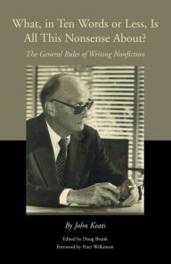 What, in Ten Words or Less, Is All This Nonsense About? Good question! Veteran writer John Keats doesn't limit his answer to ten words. But he does go to the heart of the "nonsense"-the writing life-and provide keen wisdom based on a lifetime of craft. Keats (1920-2000) was a best-selling author of thirteen books and hundreds of magazine articles who left an acclaimed twenty-four-year writing career in 1974 to teach magazine writing in the S.I. Newhouse School of Public Communications at Syracuse University. Everyone who attended Keats's classes will treasure this collection of essays, letters and unpublished stories, assembled by former student Doug Brunk. Everyone else will wish they had met the legendary writer and teacher in person. Keats's General Rules for Writing Nonfiction includes: - Where Writing Begins